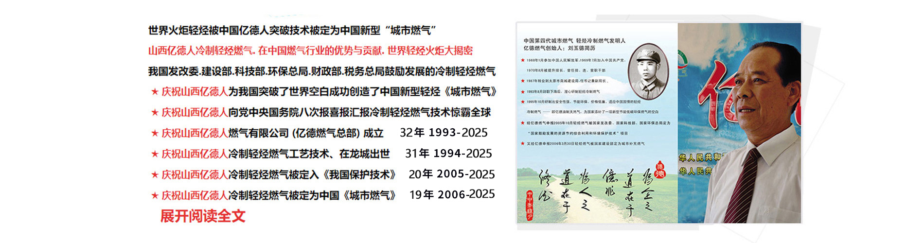 山西億德輕烴“常溫低壓”冷制燃氣在山西成功10年,零下40℃不怕凍,用戶公認環保節能,氣好價低;想出娘子關,服務全國人民;只有給黨中央. 國務院. 人大. 政協及有關部委報“喜報”匯報,中央說話,建設部才能批準造福全國人民。